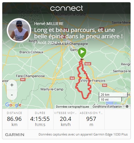 Une belle et longue sortie, avec un temps qui s'est bien dégagé durant ce parcours et qui a permis aux températures de remonter. Dommage d'avoir perdu un peu de temps avec cette crevaison. Je suis abonné en ce moment !!